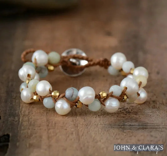 Natural Freshwater Pearl & Amazonite Wrap Bracelet