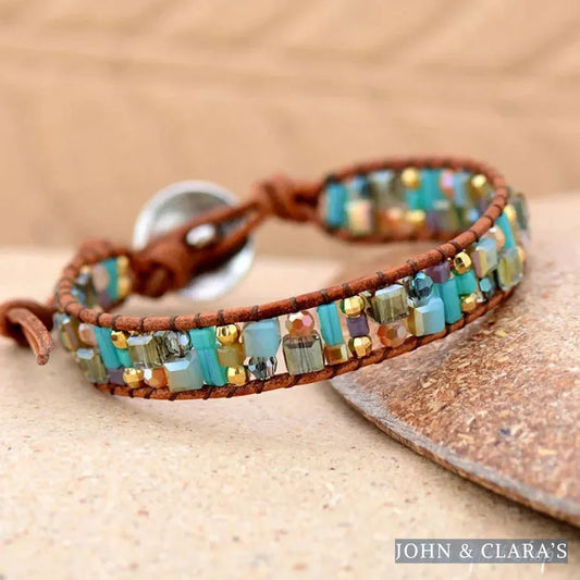 Handmade Pink Blue Bead Wrap Bracelet