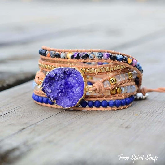 Handmade Blue Druzy Beaded Wrap Bracelet