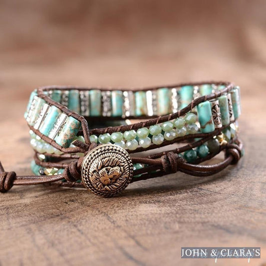 Handmade Natural Amazonite & Sodalite Leather Wrap Bracelet