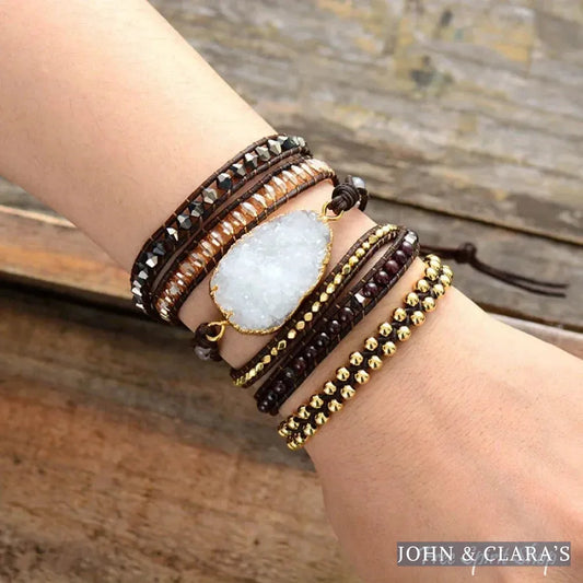 Handmade White Druzy & Mix Gemstone Wrap Bracelet