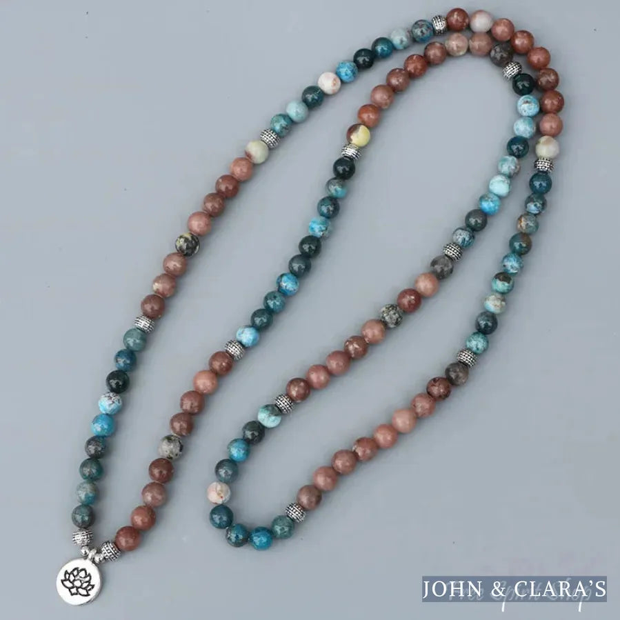 108 Natural Aqua Apatite & Red Stone Mala Bracelet