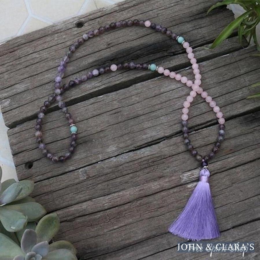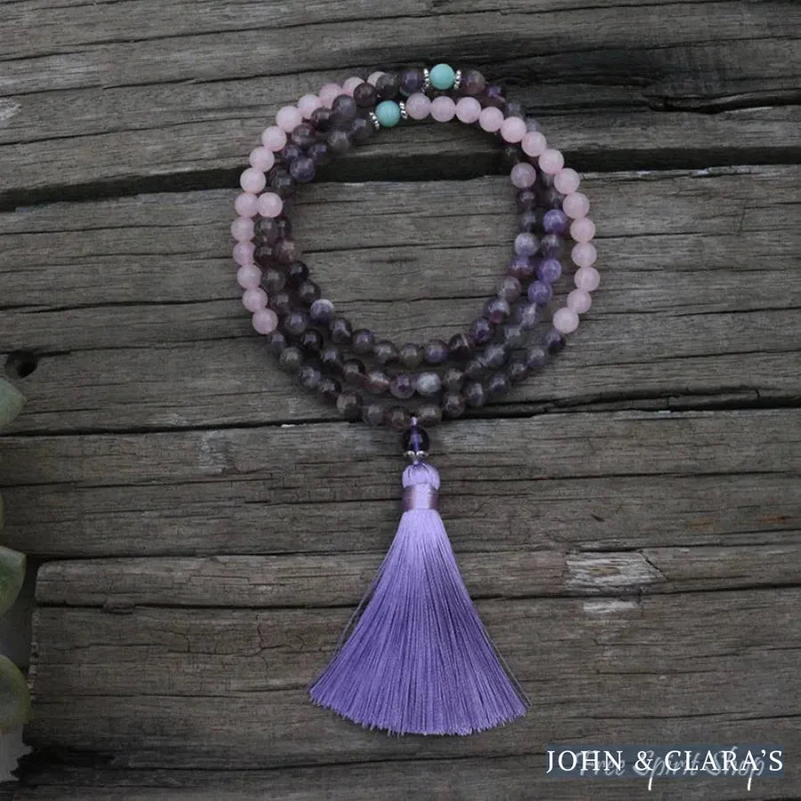 108 Natural Rose Quartz & Amethyst Mala Beads Necklace / Bracelet