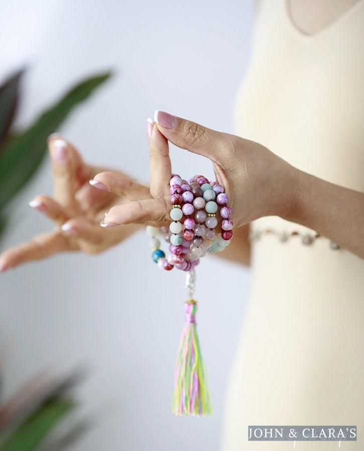 108 Purple Jasper Amazonite & Agate Hamsa Hand Mala Bead Necklace