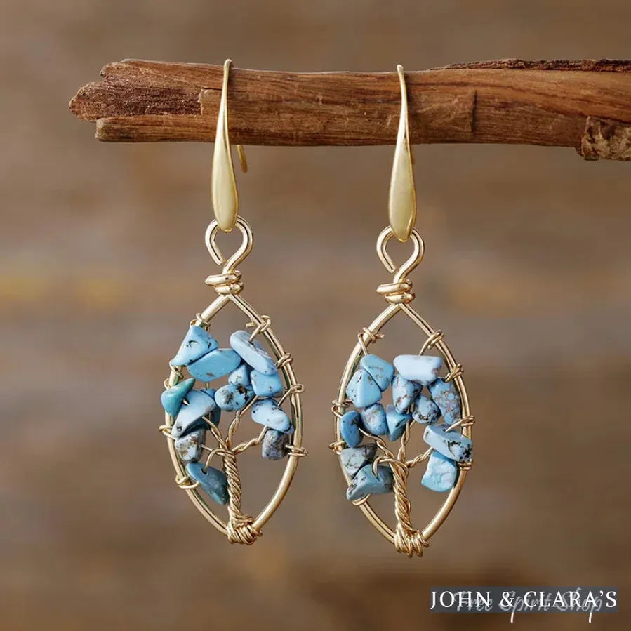 7 Chakra Crystals Tree of Life Earrings