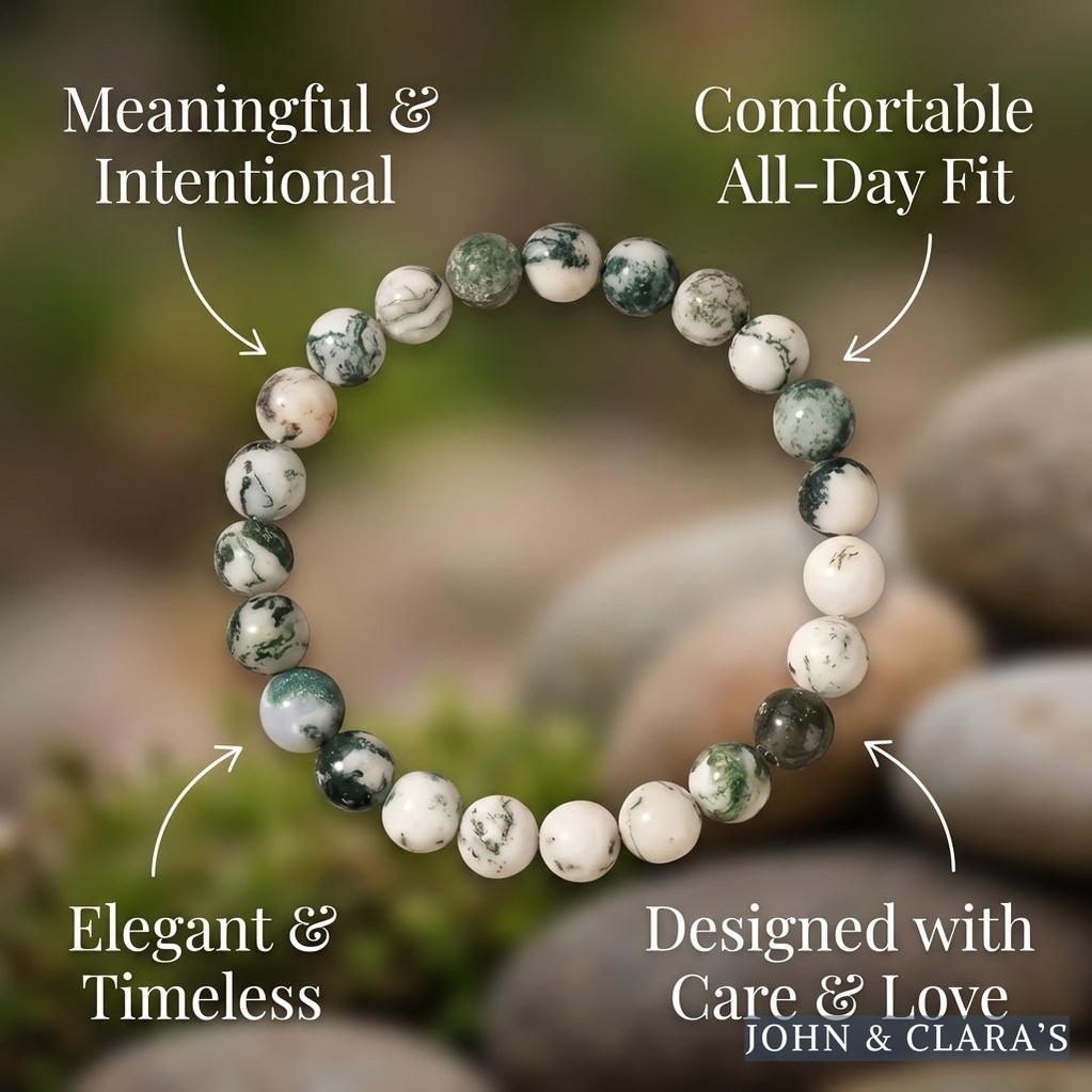 In ancient cultures, green and white stones with moss-like patterns have been treasured as symbols of growth, renewal, and the deep connection between wisdom and nature's cycles.