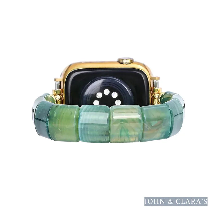 Elevate your wristwear with this handcrafted Green Agate Apple Watch Band—a unique blend of technology and natural beauty. Designed to bring both elegance and meaning to your everyday look, this band features polished green agate beads known for their soothing energy and earthy charm. Compatible with all Apple Watch models, it's perfect for those who want to stay connected while staying grounded.