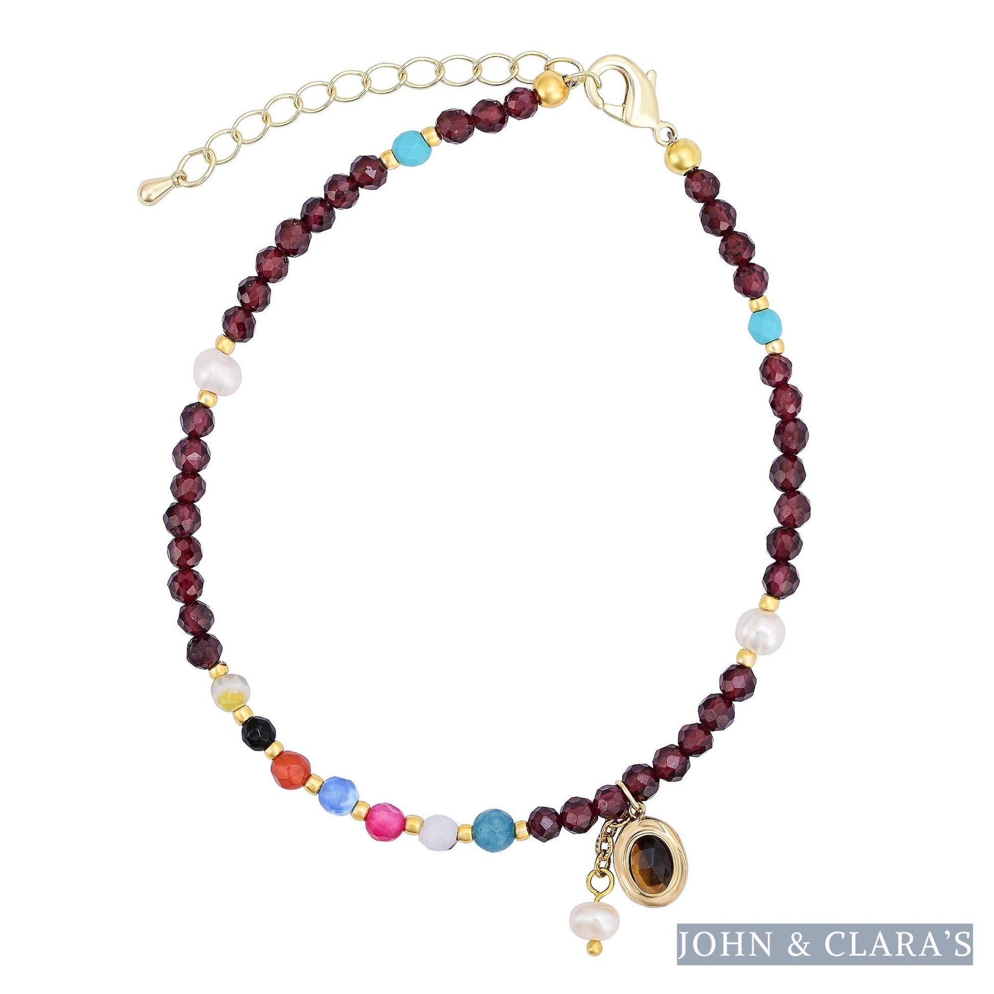 Handmade Garnet & Tiger Eye Bead Anklet