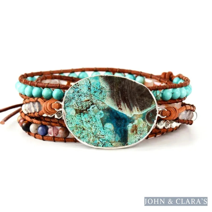 Handmade Natural Ocean Jasper Leather Wrap Bracelet