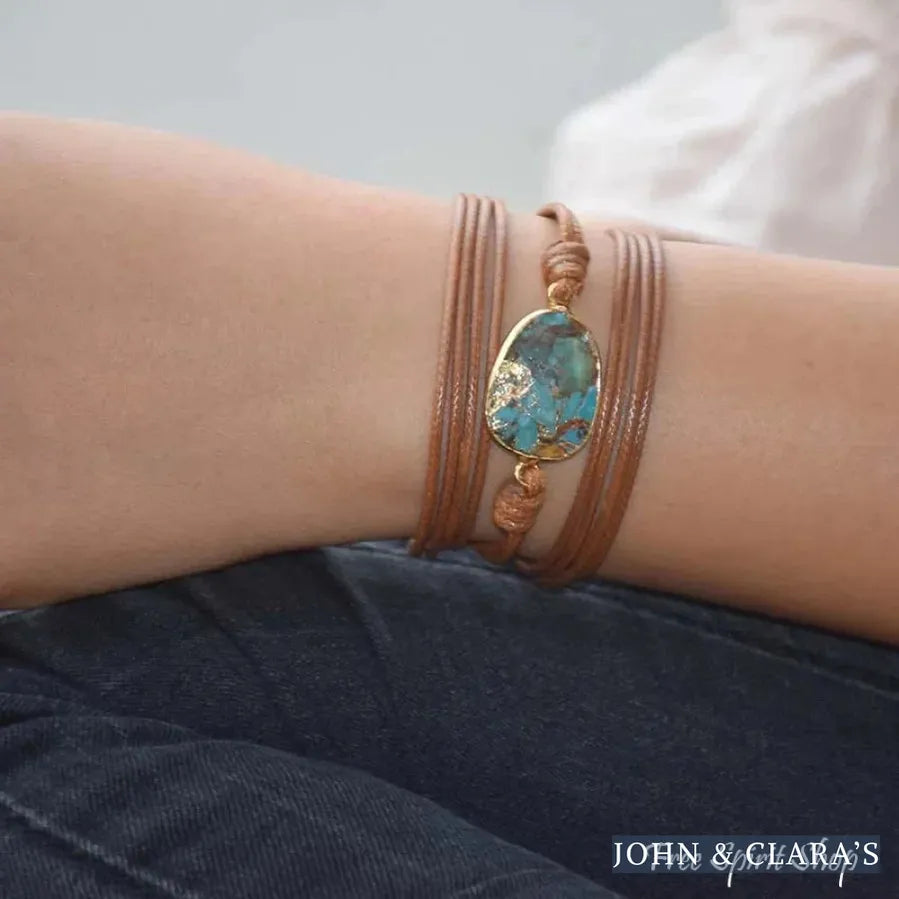 This splendid wrap bracelet is carefully handmade with Natural Turquoise gemstone and wax cord. Length is approximately 80 cm ( 31.5 inches) and it is adjustable to your wrist through the 3 closures.