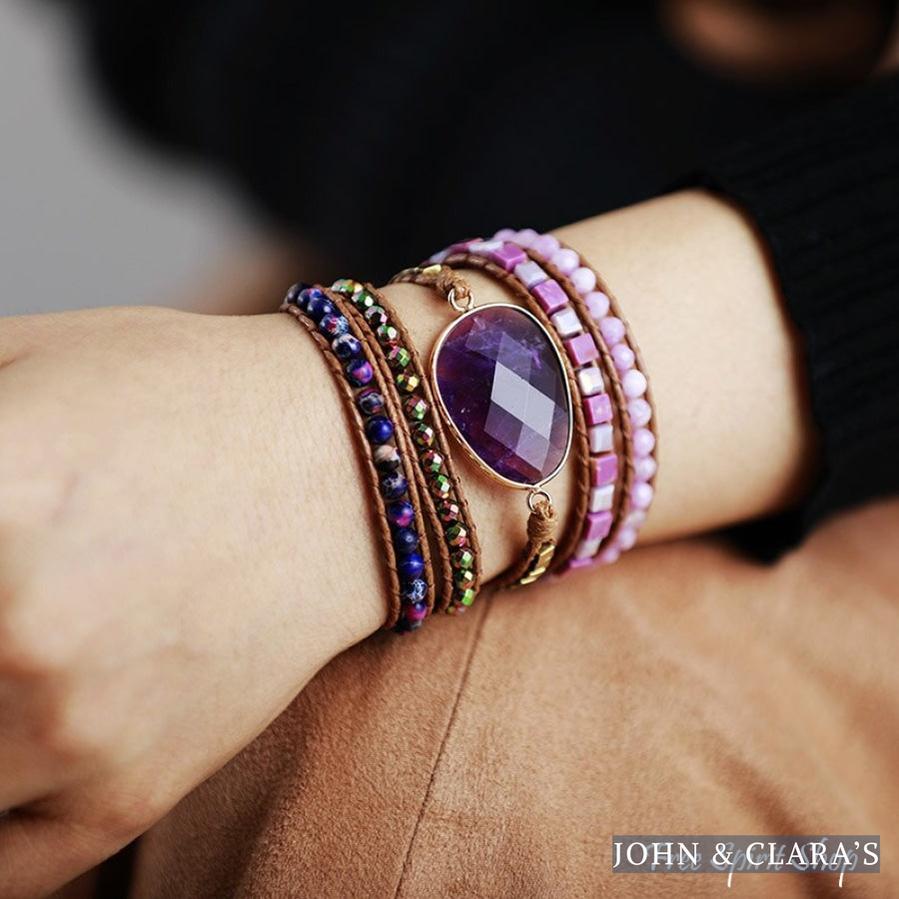 Natural Amethyst & Purple Quartz Wrap Bracelet