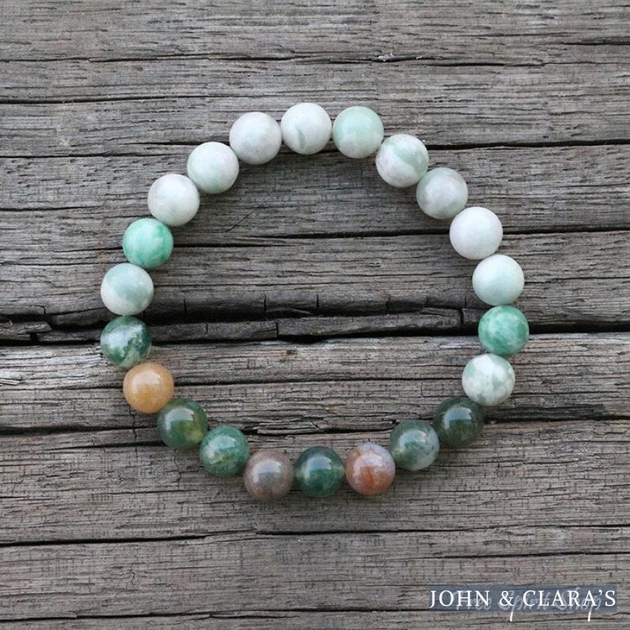 This splendid stretch beads bracelet is carefully handmade with natural Indian Agate and Lucky Jasper gemstone beads. The beads are 8 mm and the bracelet is mounted on elastic. Bracelet size is about 18.5 cm.