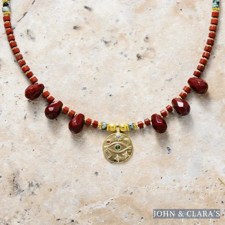 Natural Red Jasper & Egyptian Eye Charm Necklace