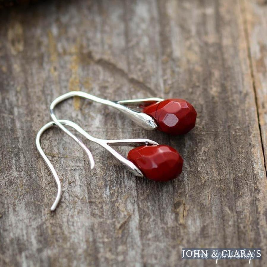 Natural Red Jasper Teardrop Earrings