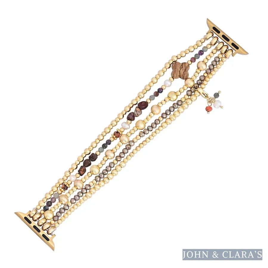 Add earthy elegance to your Apple Watch with our Picture Jasper Beaded Apple Watch Band with Clover Charm. Featuring the grounding beauty of Picture Jasper, accented with Apatite stones, pearls, and faceted crystals, this band blends natural textures with a refined touch. The dangling clover charm symbolizes luck and positivity, making it a meaningful yet stylish accessory for daily wear.